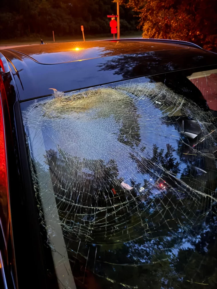 A Canadian Goose struck my windshield while traveling at 50 mph.