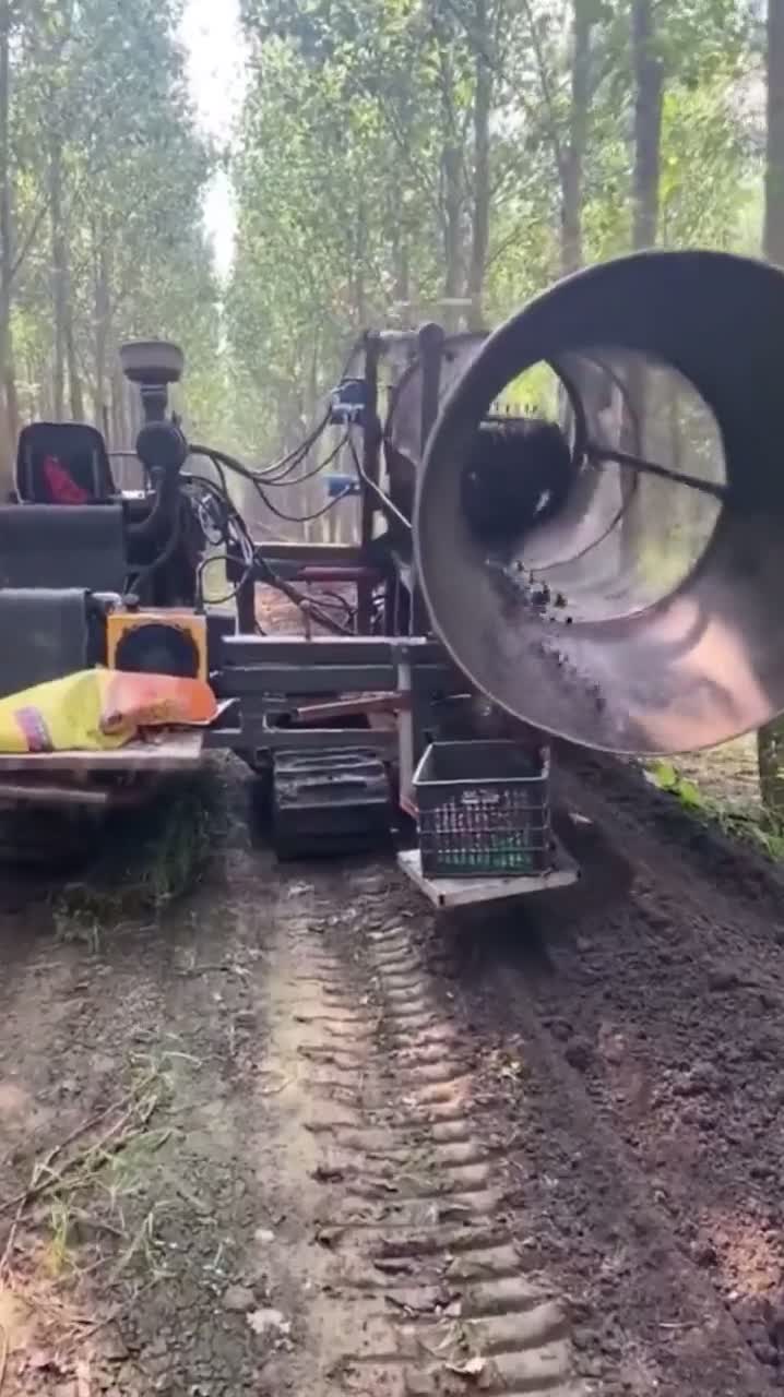 A rotary trommel machine sorting worms out of soil.