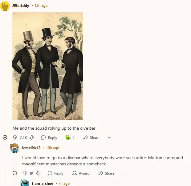 The vibe is pretty much unanimously critical, yet there’s this undercurrent of camaraderie. Everyone bonds over how odd it is that even the place for blowing off steam has restrictions like it’s a black-tie event. And the back-and-forth about what constitutes “appropriate attire” pokes fun at the place, with suggestions getting wilder as each comment rolls in. It’s almost as if everyone enjoys riffing off shared disbelief and confusion, like a group therapy session for those who just wanted to have a beer and play some pinball without putting on a jacket and tie.