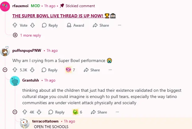 As posts multiplied, people couldn’t help but fixate on every detail—the costumes, the choreography, the fact he was singing in Spanish during one of the biggest events in American sports. It was like a shared vibe that just kept rolling, and comments seemed to echo the same sentiments over and over. Fans praised his performance while others just reveled in the excitement of seeing something fresh at the halftime show. It sparked a lot of back-and-forth, almost like a communal celebration.
