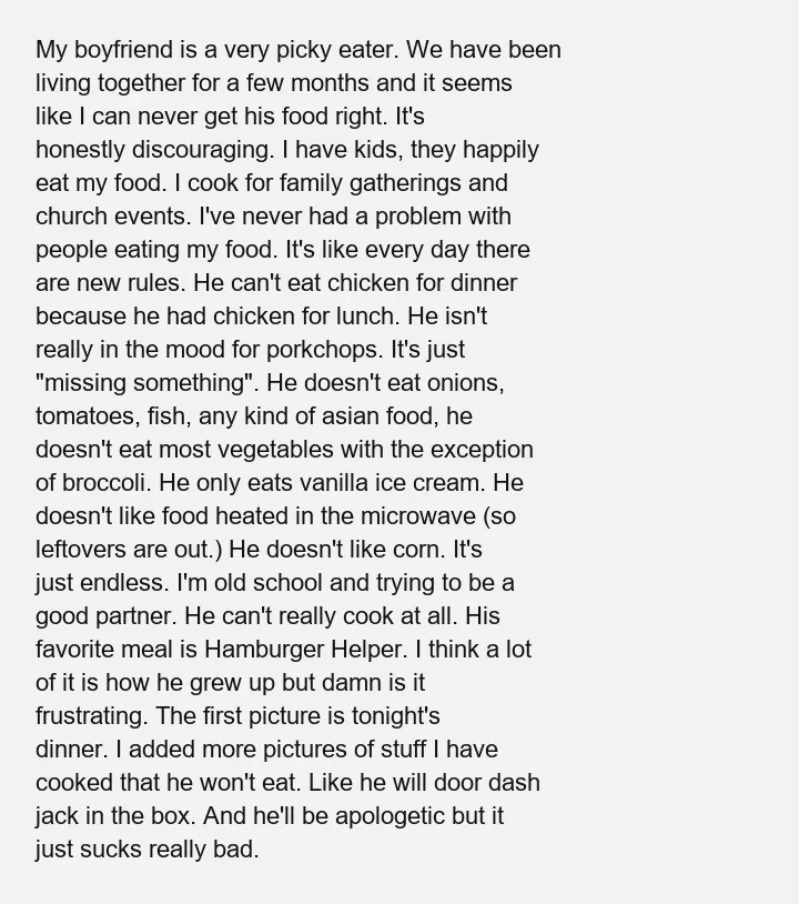 Perfectly acceptable dinner rejected by boyfriend again