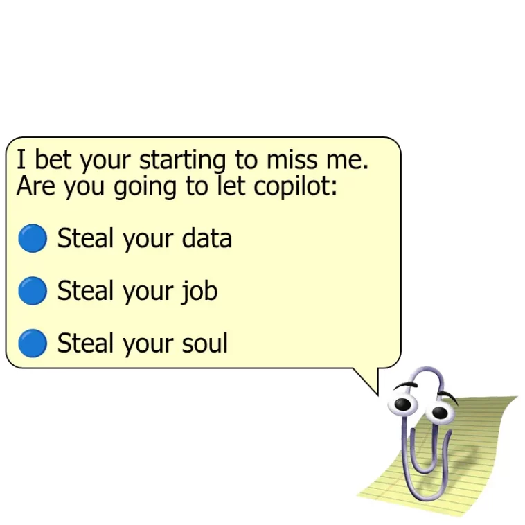 “Come back Clippy!” is an internet meme that expresses nostalgia and humor surrounding the Microsoft Office Assistant, Clippy, a paperclip-shaped character that offered help in Microsoft Office applications during the late 1990s and early 2000s. The phrase is often used in a tongue-in-cheek manner to evoke feelings of longing for Clippy’s quirky, albeit often annoying, presence in software that has since evolved significantly.