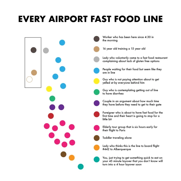 Every fast food line at the airport