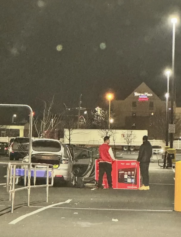 “Struggling to Fit a 65-Inch TV in a Small Car: Hilarious Moment!”