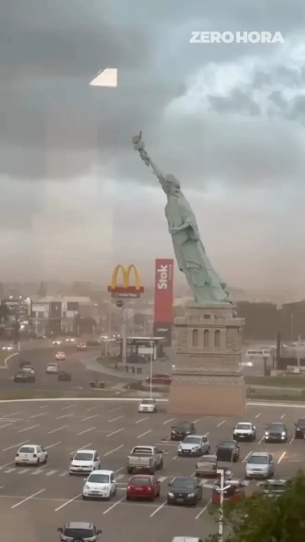 “Storm Causes Replica Statue of Liberty to Collapse in Brazil Parking Lot”