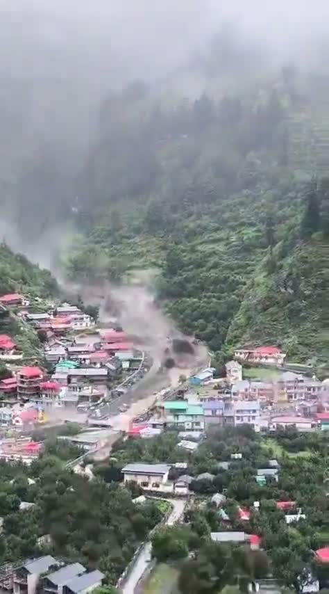 Unexpected flash flood caused by a sudden cloudburst in Uttarkashi, India.