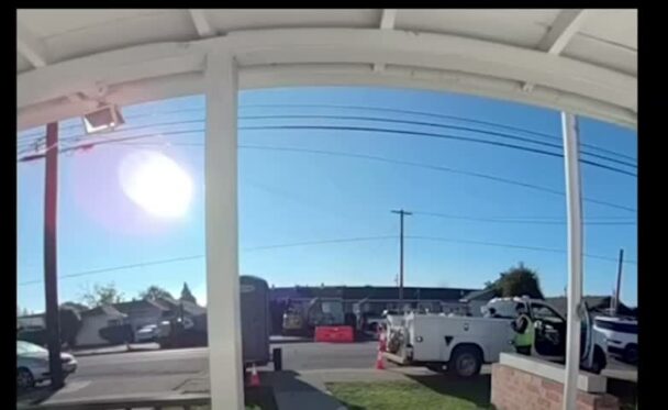 Demolishing a house in seconds using a mini excavator and a gas pipeline.