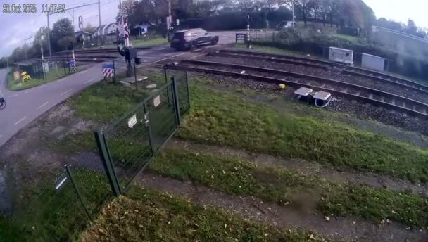 A truck became stuck on a railway crossing this morning in the Netherlands.