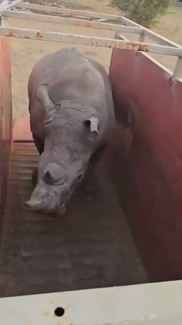 This rhino doesn’t seem to appreciate its newfound freedom.