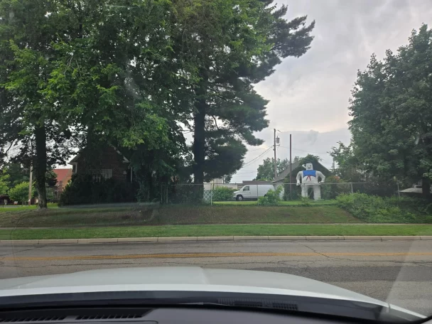 This house has a rather… unusual statue just hanging out in its backyard.