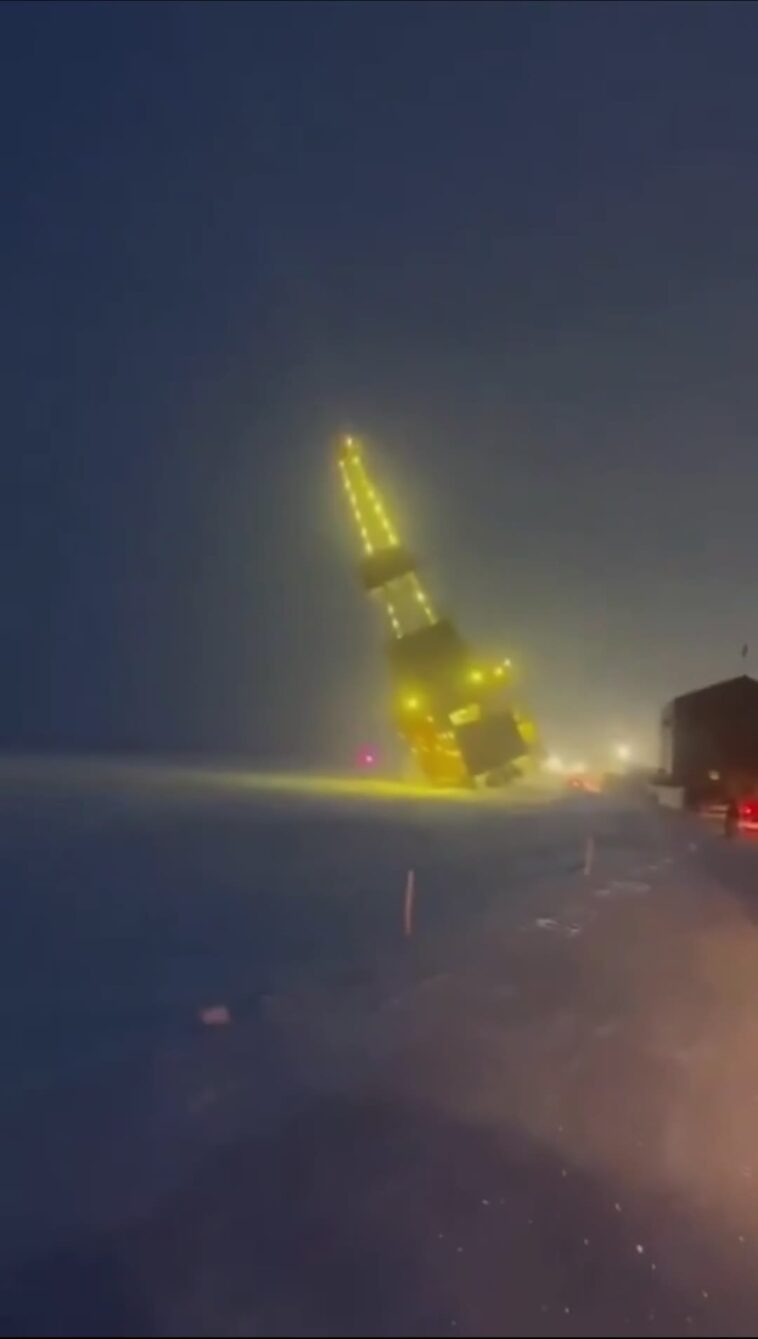 It was being moved when it happened https://alaskalandmine.com/landmines/doyon-26-largest-land-drilling-rig-in-north-america-tipped-over-and-caught-fire-on-north-slope/