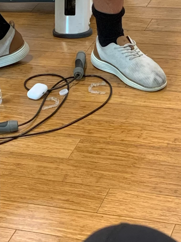 A man at the gym removed his Invisalign from his mouth and simply placed it on the floor during his workout.
