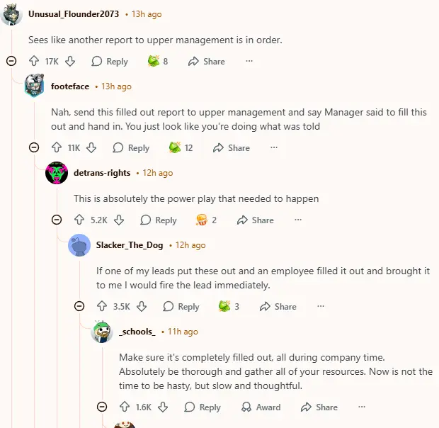 s. Everyone loves a good underdog story, and it feels like these employees, with their silent rebellion, captured that essence perfectly. The cheeky notes became almost legendary, embodying that unbreakable spirit that thrives in office landscapes filled with overbearing authority figures. There’s an acknowledgment of how ridiculous it is that it had to come to this in the first place, leaving people chuckling yet somehow disheartened. The vibe in the comments is messy and complex, with people throwing in their two cents, agreeing, sharing more tales, and marveling at how one person’s struggle resonates with so many. It’s a thread that just doesn’t want to settle down.