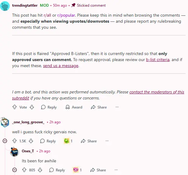 This whole situation kicked off when Gervais and O’Leary made their comments, likely from a place of assuming that