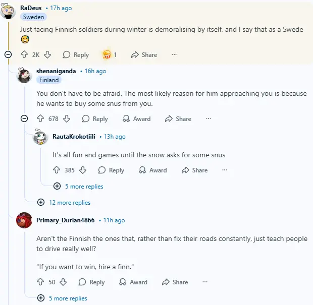 As the story spread, reactions came in waves. People were weighing in from all angles – some chuckled over how tough the U.S. soldiers were supposed to be and how they looked in comparison to their Finnish counterparts. Others brought up the differences in training methods, like it was the most interesting fact in the world. It didn’t take long for the comments section to transform into an arena: who was tougher? Who was better at keeping it cool under pressure? The thread quickly got tangled up with jokes and a few seasoned military folks stepping in to provide color commentary, adding even more fuel to the fire.
