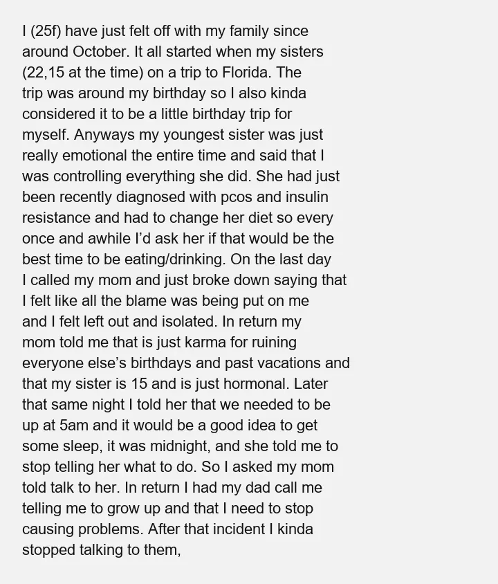 xed in with the sun and sand was a heavy load of stress, primarily stemming from her youngest sister’s recent diagnosis. As the trip progressed, emotions bubbled to the surface, claiming the family’s attention. When her sister pushed back against what she perceived as controlling behavior, it set the stage for a classic family showdown—everyone trying to voice their opinions while feelings got tossed around like beach balls.