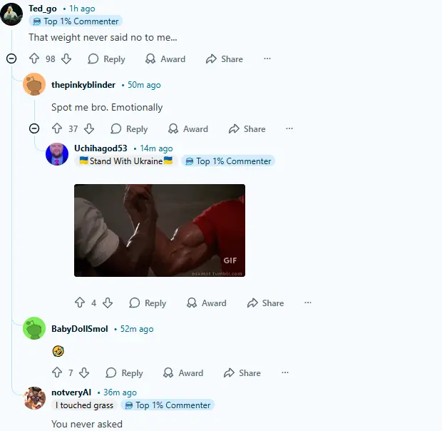The meme started circulating widely across various social media platforms, particularly in communities focused on fitness, relationships, and humorous content. It appealed to users who appreciated the juxtaposition of physical strength with the casual tone of the phrase. As users remixed the image and caption for different contexts, it began to evolve in usage, adapting to various scenarios involving strength and humorous situations.