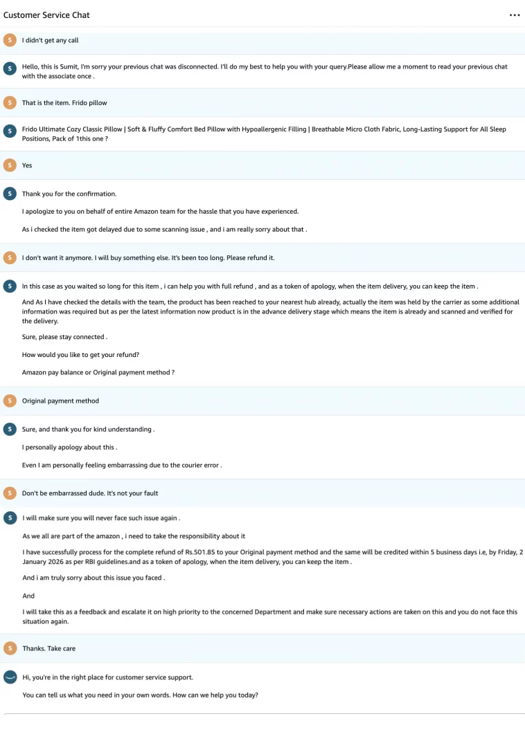 I only requested a refund, but my Amazon support representative handled it as if it were a major crisis.
