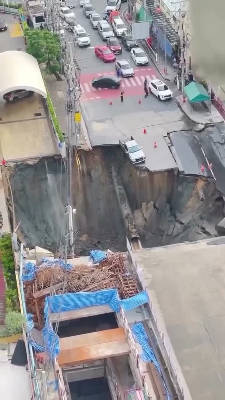 I live in Thailand, and I was in Bangkok yesterday when it happened. It’s also right outside a hospital…that building leaning over the edge is filled with hospital patients… Also, local reporting is that nobody died and nobody was hurt. They’re building an underground metro, and I suspect this is related to that construction…the people standing around are most likely workers, not just ordinary civilians and passers-by…and I suspect that’s why they’re not running. Local reaction has been interesting…I’ve already seen locals passing around edited vids of Godzilla emerging from the sinkhole as it crumbles, and some other fun stuff…On the ground, it seems like locals are concerned with the hole expanding, so there is talk about filling it in as soon as possible. Construction in Thailand is so fascinating and different from western standards, so I’m curious to see what they do.