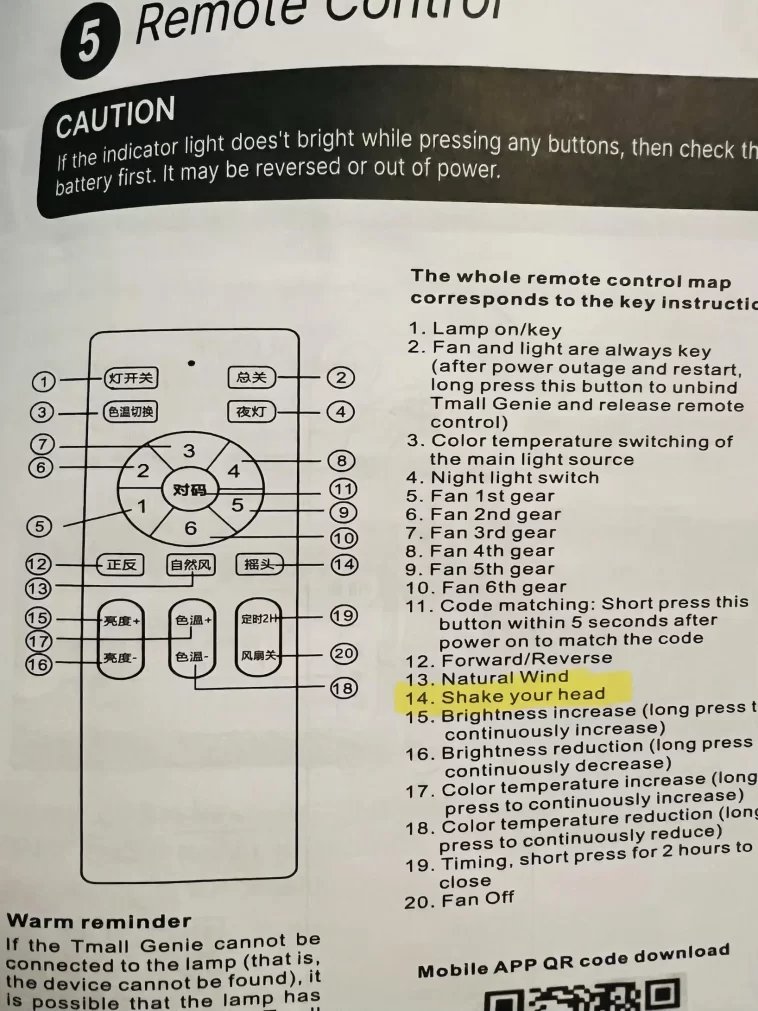 Instructions for the fan