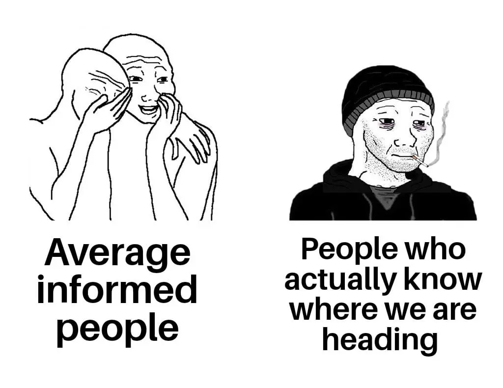 “Population collapse?” is a meme that typically features an image of a worried or concerned-looking character alongside the text questioning the implications of declining population rates in various countries. The meme often highlights themes of societal stability, economic growth, and cultural sustainability, reflecting real-world concerns and discussions regarding demographics and their impact on future generations.