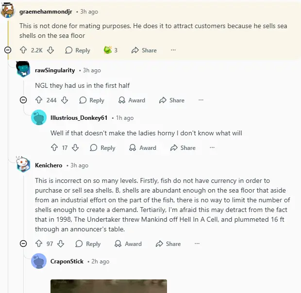 The whole thing kicked off when someone shared a video of this puffer fish in action, gracefully using its body to shape the sand into impressive patterns. It’s almost like he’s a little fishy Bob the Builder, and suddenly everyone had to weigh in on it. The original post racked up thousands of views, and from there, it seemed like the whole of Reddit had something to say. Comments poured in, with people marveling at his skills and dropping countless puns about “puffing up” the design world.