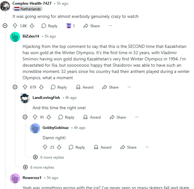 As the news spread, the comments section became a gold mine of reactions. Everyone seemed to weigh in on how incredible it was to see Kazakhstan shine on such a significant stage. Shaidorov’s journey became a talking point, with people sharing clips, discussing his background, and pointing out how long it’s been since Kazakhstan had seen such Olympic glory. Some folks couldn’t help but express pride, while others emphasized just how much this moment meant for the country’s representation in winter sports.