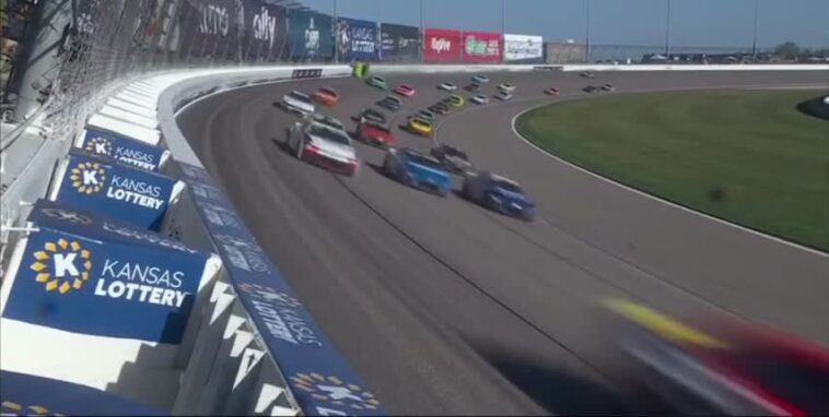Green car on the wall is Zane Smith. A darker green car (John Hunter Nemechek) pushes him up because he was too close to Zane in the turn, getting them both loose and into the wall. JHN couldn’t turn down and his car kept pushing Zane up into the wall until he started going up the wall. In the clip, you see that dark green car move down, as JHN finally gets off Zane and starts properly wrecking, taking out 2 other cars in the process as he’s completely lost control of the car (you see a red/white car start to lose it in the clip). Been awhile since NASCAR’s had a car ride up the wall like this.