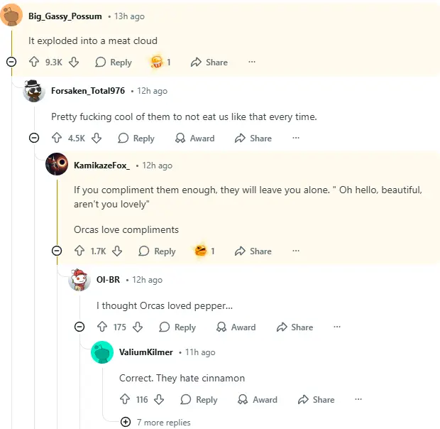 The conversations spiraled, shifting rapidly from disbelief to fascination. Many people kept circling the detail of the sunfish’s size—how this massive creature that looks like something out of a cartoon was so effortlessly manhandled by the orca. There were jokes about marine wrestling matches, but a lot of folks also marveled at the sheer power of the predator. The tone often felt like a mix of awe and slight discomfort, capturing that instinctive response to the shocking revelation of nature’s hierarchy.