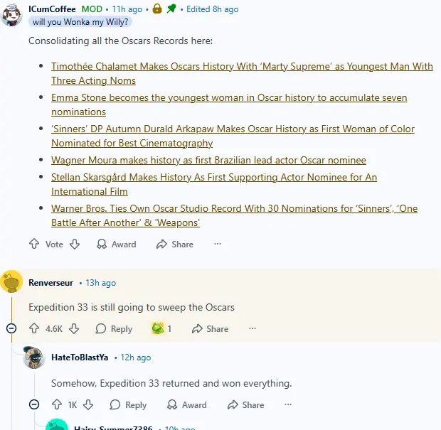 The chatter around ‘Sinners’ has skyrocketed, with various corners of the internet lighting up. Comment threads are filled with everything from joyous celebrations to some playful jabs about the previous record holders. Just the mention of Titanic, La La Land, and others brings back memories and comparisons that everyone can’t help but engage with. The buzz has a vibe that feels electric, with people eager to dive into debates about what this means for Coogler and the film industry. It’s like a friendly rivalry with Oscar history itself at this point.