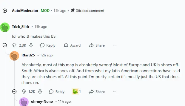 The reactions fell into a rhythm of agreement and contention. Comments bounced from mild suggestions about designated shoe zones to fiery defenses of traditions rooted in various cultures. People with little else in common found themselves agreeing or disagreeing fervently; that divide seemed to create a sense of camaraderie, like discussing a beloved (or hated) local band. It’s funny how something so trivial could ignite such a firestorm, with a tone that felt like a collective sigh—mixed with laughter, of course. Who knew something as mundane as footwear could reveal so much about personal space, hospitality, and the sheer chaotic nature of human interactions?