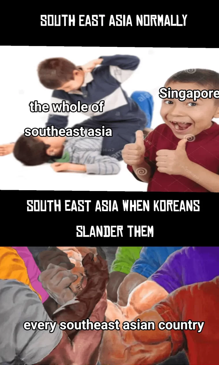 The meme “Southeast Asia normally vs when someone slander them” humorously contrasts the typical demeanor of Southeast Asian cultures with their reaction when faced with negative comments or slander. This meme utilizes a two-panel format to depict a calm, peaceful representation of Southeast Asia in juxtaposition to a more intense and aggressive response in the face of disrespect. The meme plays on cultural pride and the sometimes heightened emotional reactions that can occur when individuals feel their identity or heritage is under attack.