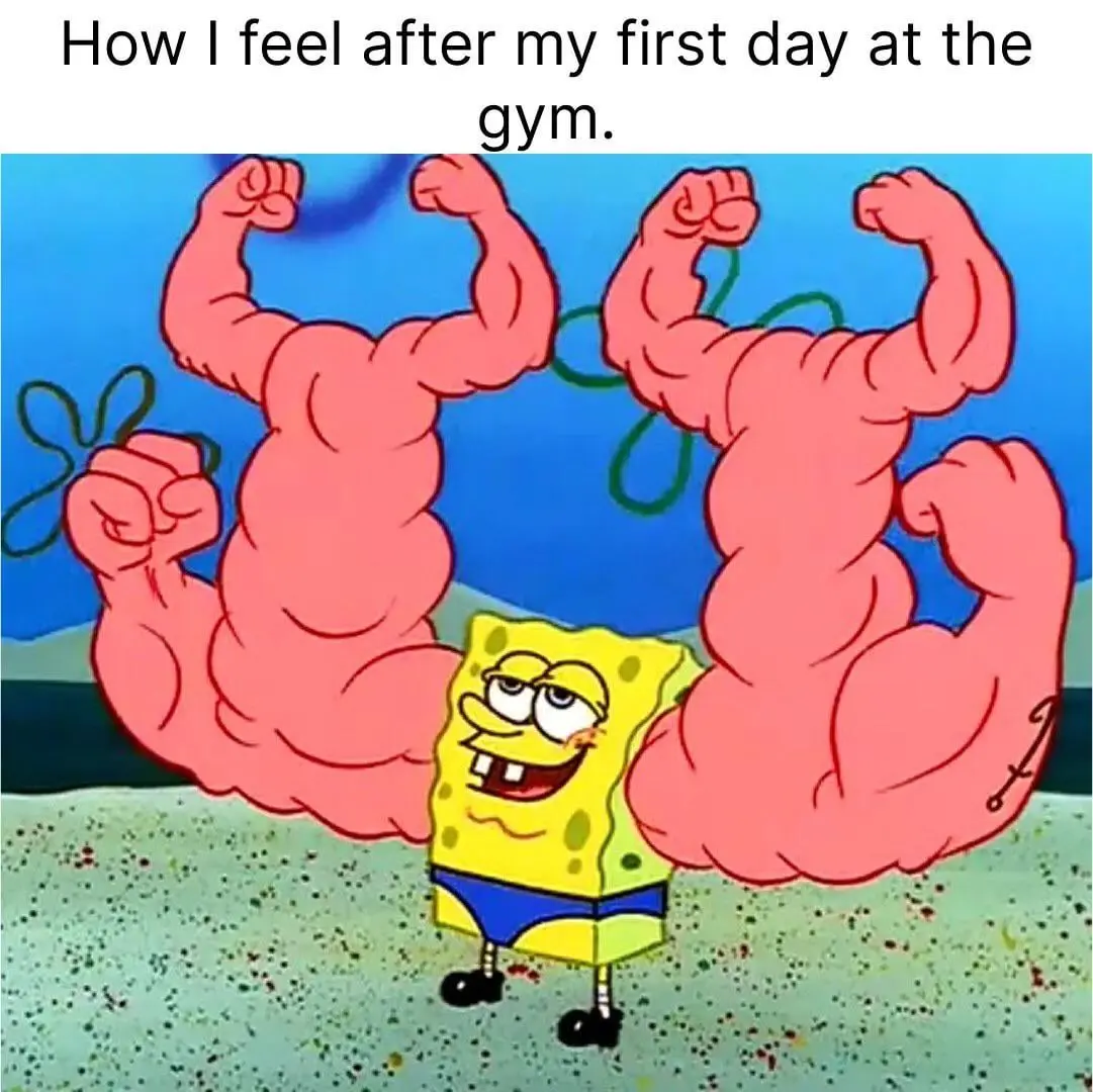 First day at the gym is a meme format that humorously captures the common anxieties and awkwardness many experience when starting their fitness journeys. The meme typically features images of individuals who look overwhelmed, confused, or out of place in a gym setting, accompanied by captions that reflect thoughts or feelings of self-doubt, intimidation, or a lack of knowledge about gym equipment and etiquette.