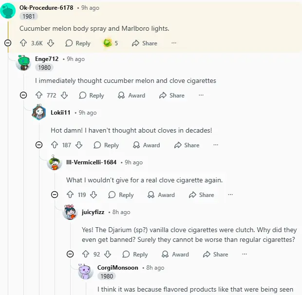 ‘s feel like a distant planet now, but for a moment, users were able to bask in that haze, caught up in the memory of a simpler existence filled with familiar scents that told a thousand stories they all recognized. The thread remains alive, though it feels like it’s just going to keep generating comments forever—like that pleasant stink of a smoke-filled diner, lingering just out of reach but never quite forgotten.