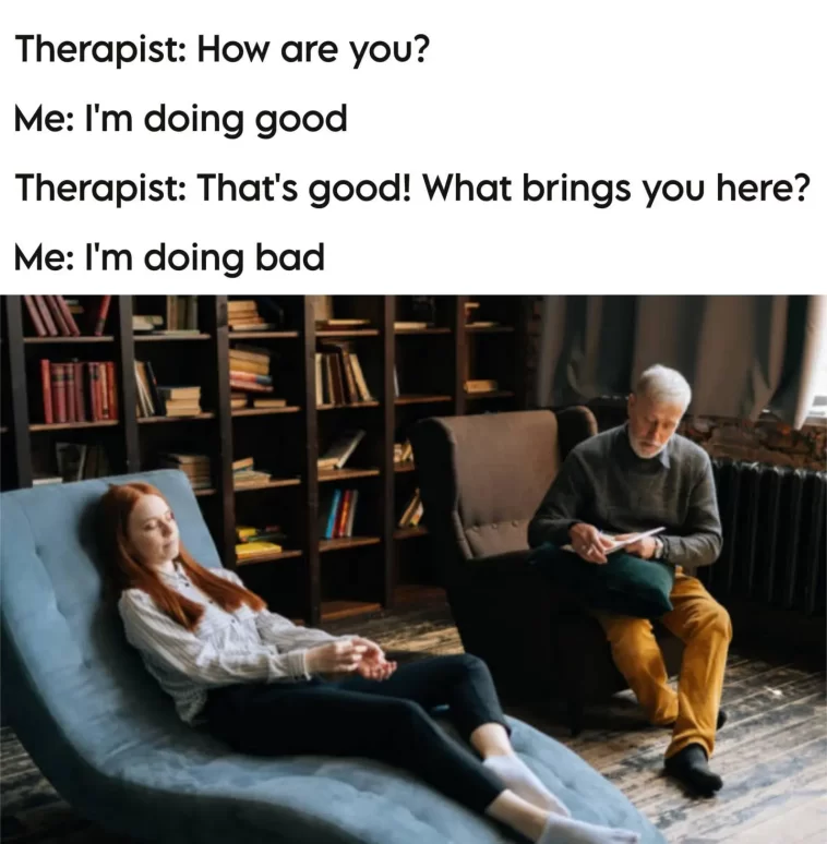 Therapy insights represents a unique intersection of humor and mental health awareness, providing a platform for individuals to engage with topics of therapy in an accessible and entertaining way. By utilizing a combination of relatable content and humorous illustrations, the meme format fosters discussions regarding mental well-being while encouraging a positive approach to seeking help and sharing experiences. As the popularity of mental health topics continues to rise, therapy insights serves as a testament to the cultural shift towards normalizing conversations around mental wellness, all while delivering comedic value.