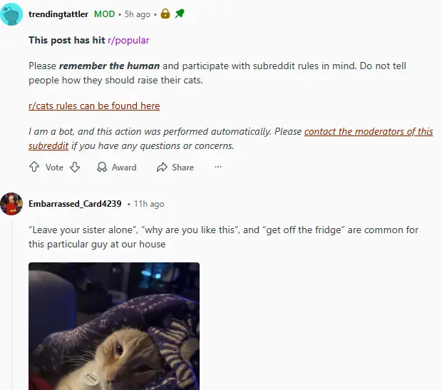 rly get it. There’s no judgment, just shared experiences that make cat ownership a rollercoaster of love and irritation. It’s fun to scroll through and see how, beneath the camaraderie, there’s a hint of quiet acceptance that these quirky exchanges are just part of the gig. The threads are open-ended, and maybe the next thing that needs to be said will come from yet another cat whisperer seeking solace in shared frustrations.