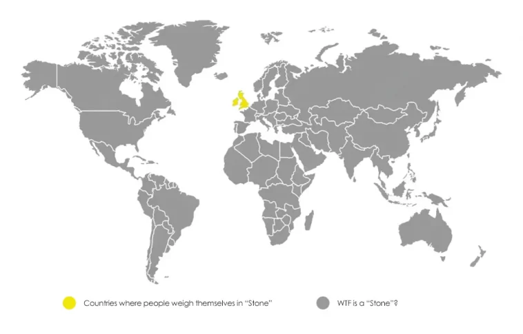 I went to visit my friend in England, and being from the States, I thought I understood the metric system. “Oh wow, you weigh 70 stone? That’s impressive!” I exclaimed, completely oblivious to the fact that her weight was actually 70 kilograms. She gave me a confused look, and the amusement began as I sat there drafting a mental checklist of what 70 stone even looked like. Was it like a boulder? Did she just roll out of bed after hibernating for the winter?