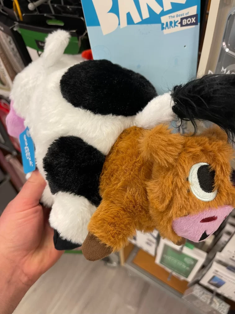 The puns are udderly amazing but this post (even if OC) is old moos. This toy was all over IG reels and TikTok months ago. There’s pages dedicated to bad dog toys from bark box 😂