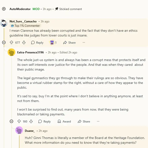 Emotions are running high, with many expressing feelings of betrayal and anger. The vibe is electric, almost urgent; there’s this sense that something has to change, that a line has been crossed. Users are sharing personal stories about how these rulings impact everyday lives, creating a tapestry of shared experiences that underscores the widespread discontent. It’s fascinating and a little unsettling to see how quickly a collective sentiment can form, with each comment adding fuel to the fire. Some are outright demanding a transformation, a complete overhaul, while others seem resigned, as if they’ve accepted that this is the new normal. It feels like the conversation is still unfolding, like a thread that refuses to settle down or tie itself up neatly.