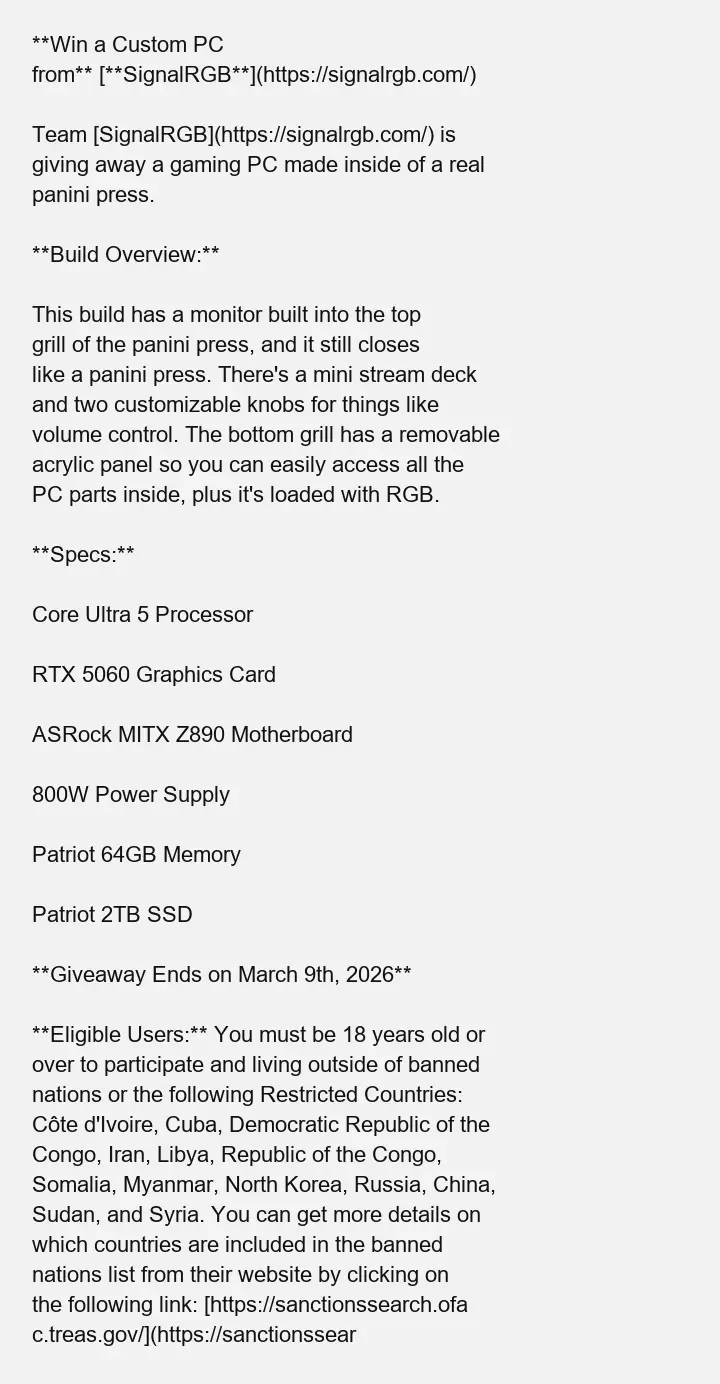 This whole debacle seems to have kicked off with SignalRGB, a company known for its vibrant RGB lighting and gaming accessories. The moment they announced the giveaway, gamers and meme lovers alike couldn’t resist flocking to it. A gaming rig built inside a panini press? The Internet immediately latched onto that, as only it can do. As comments poured in, it became clear that this was no ordinary contest; it was a celebration of absurdity.