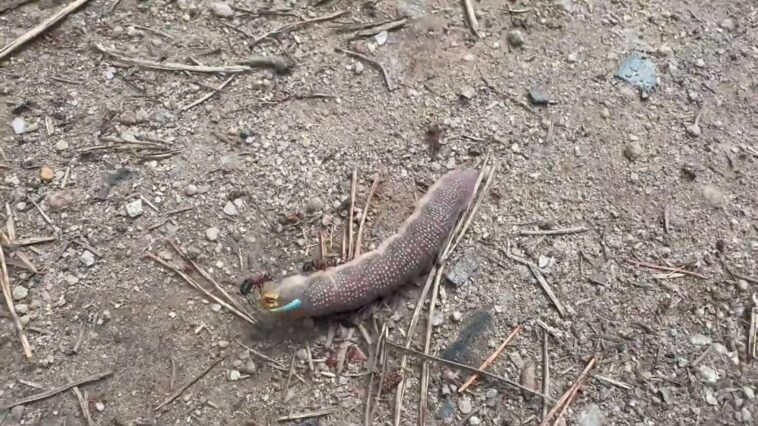 Wood Ants Take on an Elephant Hawk-moth Caterpillar
